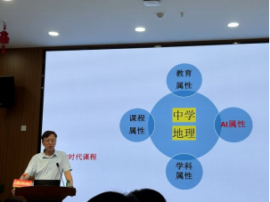 讲座伊始,段玉山教授以一个生动的比喻打开话题:“如果从上海到南京,我应该选择走路还是坐高铁”,引发听众对人工智能技术接受度的共鸣。随后,段教授列举一系列数据来说明在数字化与智能化飞速发展的当下,人工智能正深刻影响着各个领域,教育领域也难以置身事外。在核心素养导向下,地理教育如何与人工智能技术实现深度融合,成为了师范生、在职教师共同关心的问题。段教授提出中学地理具备多重属性,举例阐述了课程属性、学科属性、教育属性,着重强调AI属性是当下值得深入探讨的关键,未来地理课程形态、学习形态和评价形态可能发生的巨大转变,包括传统地理课结构AI重构、知识传授到智能建构、智能诊断与个性化学习评价。“如果AI能帮老师省出一些工作时间,大家希望老师们是用这些时间去‘玩’,还是忙其他的呢?”段教授抛出的问题让大家陷入深思,叩问教育数字化转型进程中人的主体性与技术工具性的边界。
