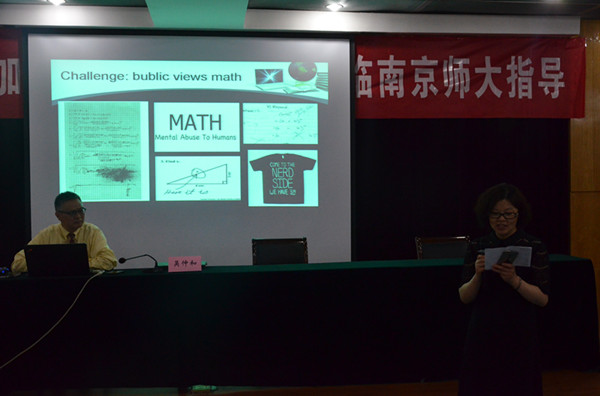 在如何成为一名优秀的数学教师方面,吴仲和教授重点讲述了PCK(pedagogy content knowledge)这个概念。一个教师懂得的学科教学知识越多,并不一定代表这位教师能够取得理想的成就。正所谓:“no action talk only”,教材编写者并非权威,教师的教学必须以学生的具体实际为基础,学生怎么学往往比教师怎么教更重要。其中,学生学习知识的过程可以用5E来表示,分别是engangement,exploration,explanation,expanding,evaluation,必须让学生不重不漏地经历这5个过程,而不是教给学生一些记忆知识的口诀。最后,吴仲和教授向同学们推荐了《release your imagination》一书,通过这本书可以体会行为主义和建构主义的区别,另外推荐了《Sophie's world》供对哲学有兴趣却读不懂哲学的同学阅读。除此之外,吴仲和教授还展示了数位优秀的美国数学教师的图片,并介绍了他们的事迹,鼓励同学们对未来教师职业充满信心。