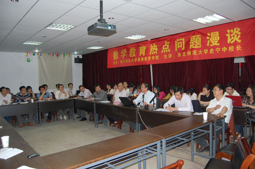 与会老师和同学们围绕自己所关心的问题或目前存在的困惑,与史宁中校长进行了热烈的交流与讨论。此次“数学教育特点问题漫谈”学术讲座与研讨活动在这些数学教育思想的碰撞中圆满结束,史校长对于数学基础教育新颖、独到的见解,使在场的老师和同学们受益匪浅。