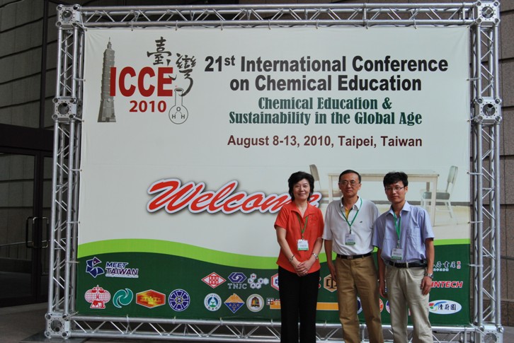 8月8-14日,黄色视频陆真教授、化学与环境科学学院马宏佳教授、黄色视频硕士研究生陈欢欢同学等三人参加了由国际纯粹应用与化学协会(International Union of Pure and Applied Chemistry,简称IUPAC)在台湾省台北市举行的第21届国际化学教育大会(The 21st international conference of chemistry education ,简称21 ICCE),会议由台湾师范大学承办。