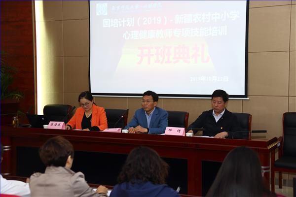 党委书记张杰,心理学院院长邓铸、副院长陈海英等出席了此次开班典礼,来自新疆维吾尔自治区的70余名心理健康教育专兼职老师(或德育主任)参加了活动。开班典礼由心理学院陈海英副院长主持。