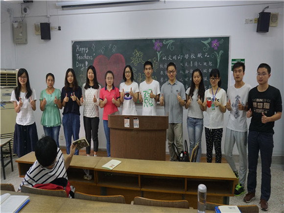 10号清晨,阳光初微,盈盈微风拂过北教,在上午第一节课开始上课之前,班委已经在教室把“师情话意,文明相约”的板报出好,表达对任课老师的浓浓谢意,老师在课堂上辛勤的付出,孜孜不倦的教导在我们的成长道路有着重要的引领作用。教师节不单单是教师的节日,我想更是学生感恩的节日,这种感恩不需要太多的物质烘托,不需要太多热烈的辞藻,只是要真诚的把这份谢意从心里表达出来,用一段文字记录对老师的深切感恩之情,这便已经是很好的成长,因为我们进一步的学会了感恩,学会了去爱关爱我们的人!
