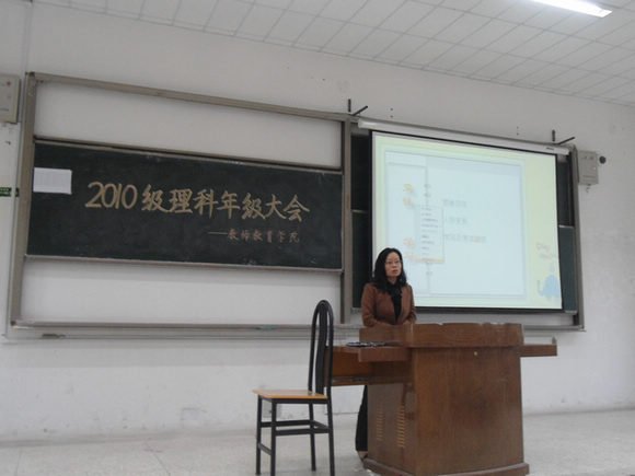 于学正楼201教室召开了2010级理科年级大会。年级大会围绕师范生专业技能与职业发展,对实习、暑期社会实践、江苏省师范生职业技能大赛以及日常事务进行了安排。会议由教师院团委书记支景老师主持,学院副院长周晓静老师及学院教育技能系李园老师出席。