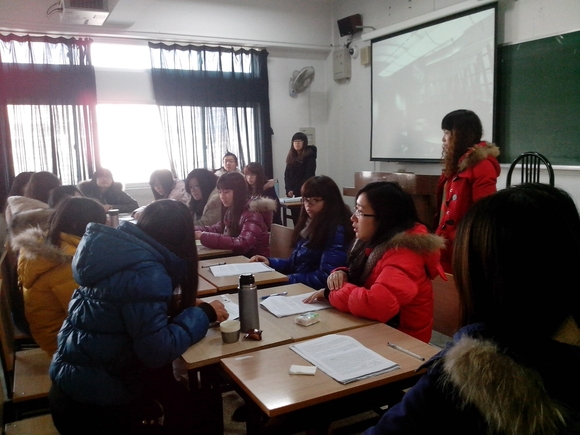 活动当天同学们首先将教师打造成简易舞台,随后活动也就正式拉开帷幕。第一小组和第二小组依次上台表演,第一组导演管春华先介绍了演员的名单和角色,演员们也各就各位。在表演过程中,大家全情投入,流利地讲出自己的台词,并且在文本的基础上加入了自己的想象和动作,赋予每个人物不一样的性格特征,12个怒汉俨然在眼前。在第一组表演结束五分钟的中场休息中,李莉老师将自己带的巧克力分发给每个人吃。同时第二组的演员也在紧张地准备着。之后,第二组的同学也是全情投入地演着自己的角色,搞笑之处逗的大家哄堂大笑,现场气氛甚是活跃。在两组同学表演完毕之后,顾赟同学带来了暖场节目——舞蹈《江南style》。舞蹈将整个活动推向了高潮,大家在一片欢声笑语中体验了现场版的《江南style》。