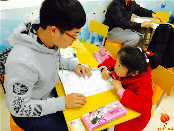 由于天气寒冷,早早到场的志愿者们都坐在座位上搓手取暖。但一声清脆的“老师好”便像冬日里燃起的炭火,瞬间温暖了志愿者们的心。先到达教室的是低年级的小朋友,他们在家长的陪伴下到达教室,与志愿者们问过好后找座位坐下,开始认真写作业。志愿者们静静地坐在一旁,或是看书,或是查阅小朋友们的作业情况。待到作业完成后,志愿者对小朋友的作业进行检查,对错误题目进行讲解。
