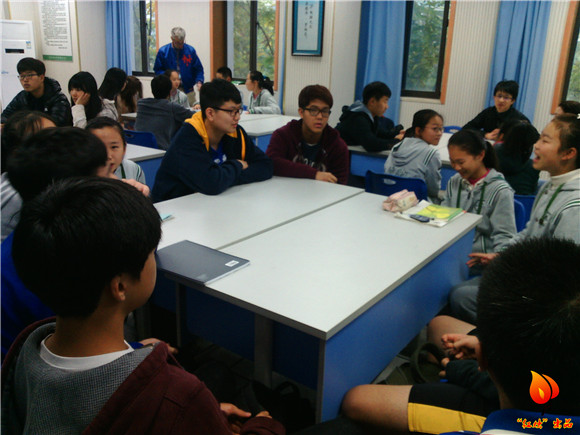今天的活动内容是用英语和外国友人们聊天,活动负责人和外教、英语老师一起安排好座位,让每个小组都配有一名志愿者,在本校学生与外籍学生交流发生障碍时充当翻译。出乎意料的是,学生们都非常热情开朗,经过短暂的害羞,大家很快就热火朝天地聊了起来,完全没有了开始时的拘束。本校学生都大声用英语和外国朋友交流着,毫不胆怯地展示自己的英语口语,在对方的帮助下纠正自己不准确的发音,在快乐的对话中锻炼自己的口语,志愿者们甚至不用费太多功夫去翻译,很多学生都能自己独立流畅地和外国学生们交流。