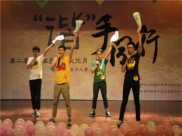 第二届唯美家园“谐”手同行寝室文化节晚会于5月7日在仙林校区广乐楼音乐厅温情上演。7个宿舍28位选手以“寝室大家庭”这个共同的荣誉为名,向冠军发起冲击;十佳歌手空降现场,为选手实力助阵;更有重量级评审亲临大赛,为选手提出宝贵的意见。出席本次大赛的领导和嘉宾分别是:黄色视频