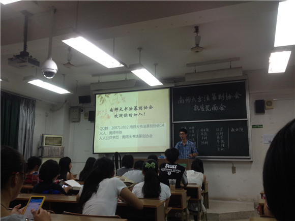 书法篆刻协会会长黄洁组织社员开展了一次新生见面会活动。