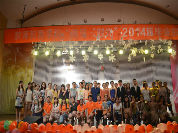 2014届“遇见·时光”毕业联欢会在这里隆重上演,校党委组织部副部长朱冬梅老师、教师院团委书记支景老师、各年级辅导员老师和10级毕业生们共同参加了此次毕业联欢会。