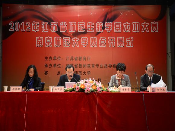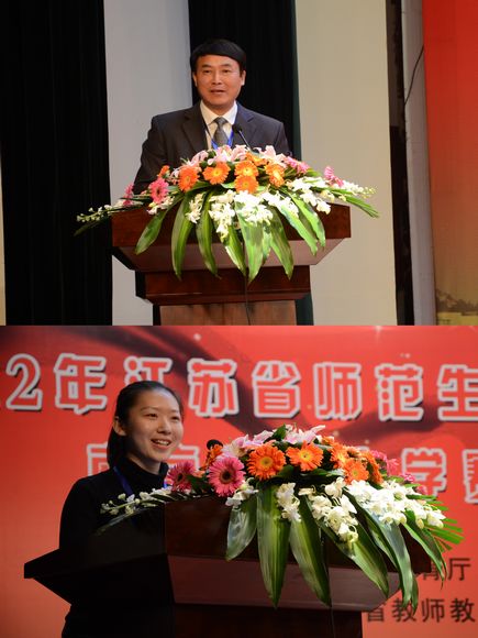 常务副院长郭宁生宣读了大赛规则。参赛选手、评委代表分别发言。最后,江苏省教育厅师资处副处长崔春霞对师范生表达了殷切希望。她指出师范生是未来的教师,是教育事业的新生力量,师范生的培养质量将直接影响到江苏基础教育师资的整体水平,关系到基础教育的质量,本次大赛意义深远,预祝大赛圆满成功。