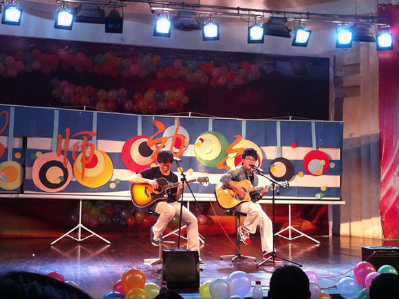从极具现代感的摇滚吉他弹唱,到优美典雅的民族乐器合奏;从火热的现代爵士、动感活力的街舞到极具民族特色的新疆热舞串烧;从传统的小品相声到活力四射的西方音乐剧;从古代后宫风云,到网络时代下的90后现代生活……一场场,一幕幕,演不尽的是南师师院学子们的多才多艺,听不完的是师院精英们绝顶口才,品不彻的是无与伦比的师院才情与本色。为了调节晚会的气氛,同学们还特意在晚会的节目之间适当穿插台上台下互动游戏,这不仅调整了晚会表演的节奏,使节目舒缓得当,也进一步活跃了全场气氛。游戏“copy不走样”中,互动观众精彩的肢体模仿引得台下笑声连连。而“冲关你最棒”则以一个个精心的关卡设置,引人注目,最后获胜的新疆姑娘也给观众一饱歌喉与舞蹈的视听享受。