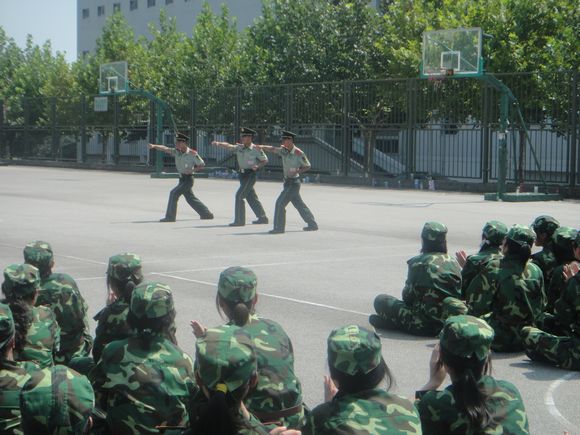 学生会部分代表也随领导前来慰问,他们贴心地给新生们分发了清凉解暑的酸梅汤,并积极与同学、教官互动,新老生交替献艺,声声传情,教官们的军旅拳表演也赢得了阵阵掌声和欢呼,热烈的气氛让头顶的骄阳也逊色不少。